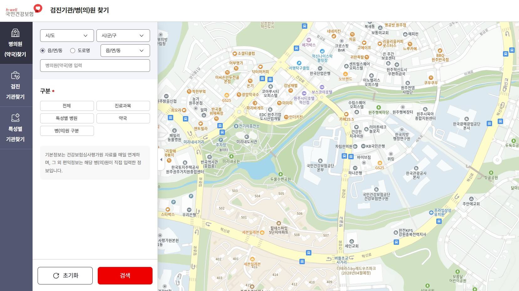 ② 상단 메뉴 → 건강 in → 검진기관 찾기